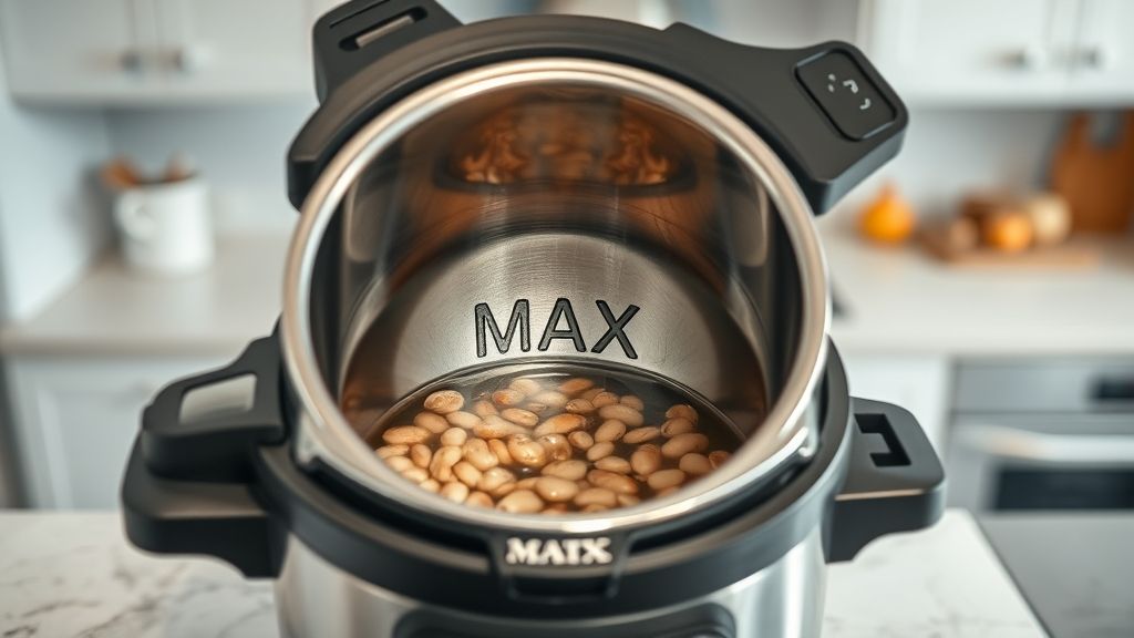 Além do risco, o excesso de água sabota sua receita. Sem espaço para o vapor, a panela não atinge a pressão ideal, e os alimentos ficam “ensopados” em vez de cozidos na pressão.